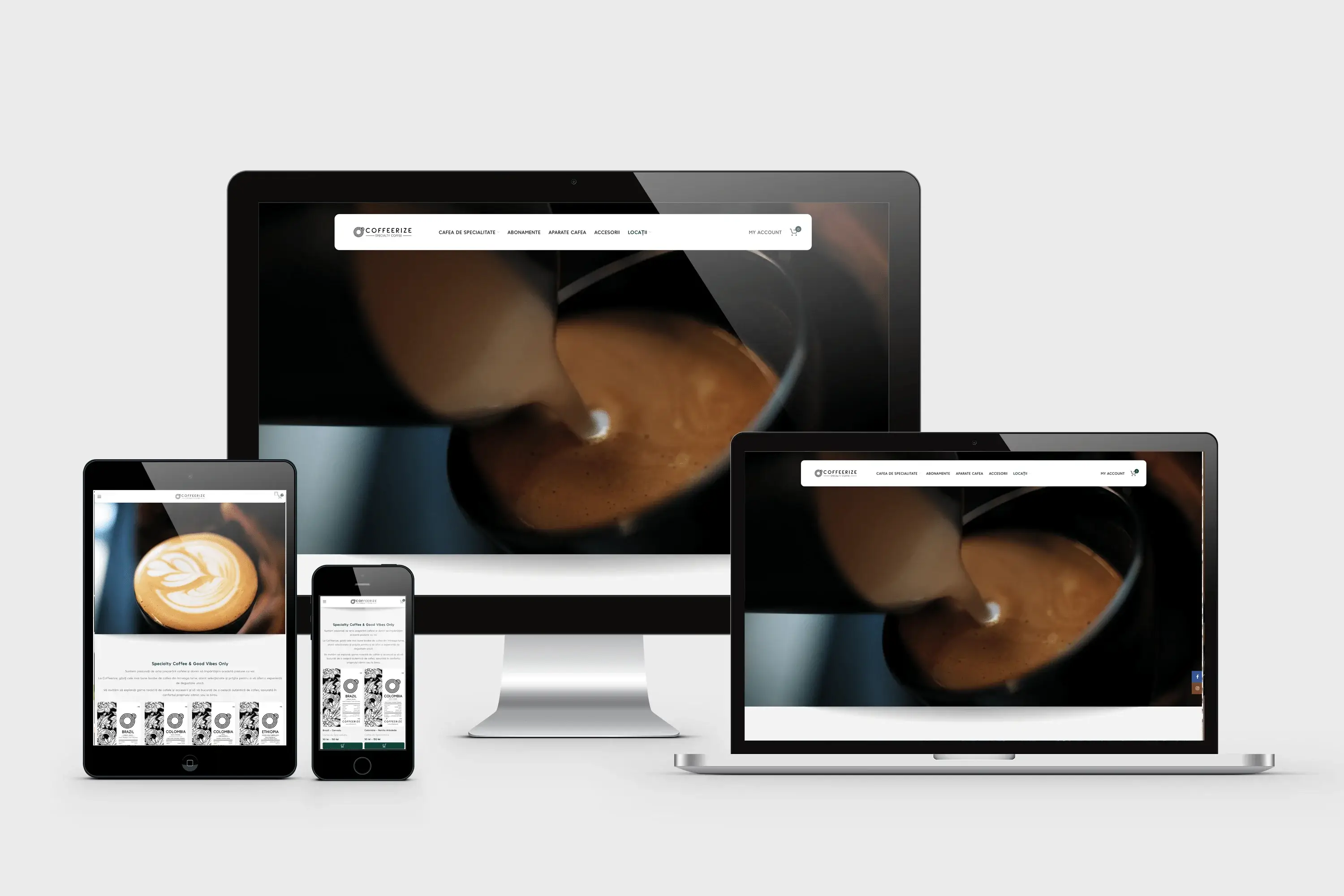 Am creat magazinul online CoffeeRize, specializat în comercializarea cafelei de specialitate, echipamentelor pentru prepararea cafelei și accesoriilor asociate. CoffeeRize oferă clienților posibilitatea de a achiziționa cafea proaspăt prăjită, echipamente de înaltă calitate și accesorii pentru a-și bucura de o experiență autentică de cafea de specialitate. Site-ul a fost dezvoltat pentru a oferi o experiență de cumpărare facilă, cu opțiuni de plată cu cardul și livrare rapidă prin intermediul curierilor.